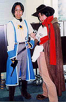 我がサイトのBBS常連様の時雨さん(左)と誠さん(右)です。ジュデッカとシャイアンのコスプレです。他にもサードのコスもなさってました。気合い入っていてよかったです。もうミミ感激です。(下の解説参照) |
