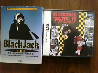 DSソフトの『ブラック・ジャック 火の鳥編』。これはね、うんアニメのブラック・ジャック21ファンならイイかも。というかもうブラック・ジャックならなんでもオッケーという度量の広い人と、オールスターシステムをイカンなく発揮してくれているつくりなので、手塚ファンという人なら有名キャラがバンバン出て来るので満足出来ると思う。しかし、攻略できねぇ!ので中途でなげだしたままだ。というのも使い込んだDSではタッチペンの微妙な動きにズレがあるのか、どう見てもセーフだろう!と言う箇所でミステイクになりやり直してタイムアウトと言う目に。タッチペンで画面を何度調整してもミリ。←個人的な意見と現象だが。新しめのDSでないと攻略難しいと思う、ので壊れて買い替えたら続きを〜、とも思ったけど今やDSも3D時代だしなぁw。絵柄は原作寄りだと思う。ちなみに、OVA版のブラックジャックの絵は、テレビアニメ版のコブラとかベルバラがチラつくwんでちょい苦手です。 |